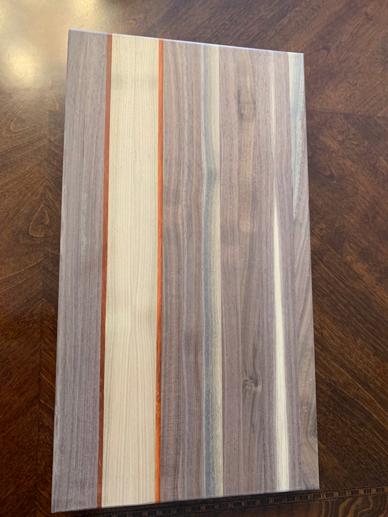 My first cutting board was made as a result of a class at Woodcraft of Knoxville. The class was titled “Woodworking 101: Straight, Flat And Square”. Notice that class had nothing to do with cutting boards. One of the results of that class was that I decided to make cutting boards for my children for Christmas. This had to be something special so I ordered three cutting board kits from Woodcraft Supply. Of course, it had to be the exotic kit.